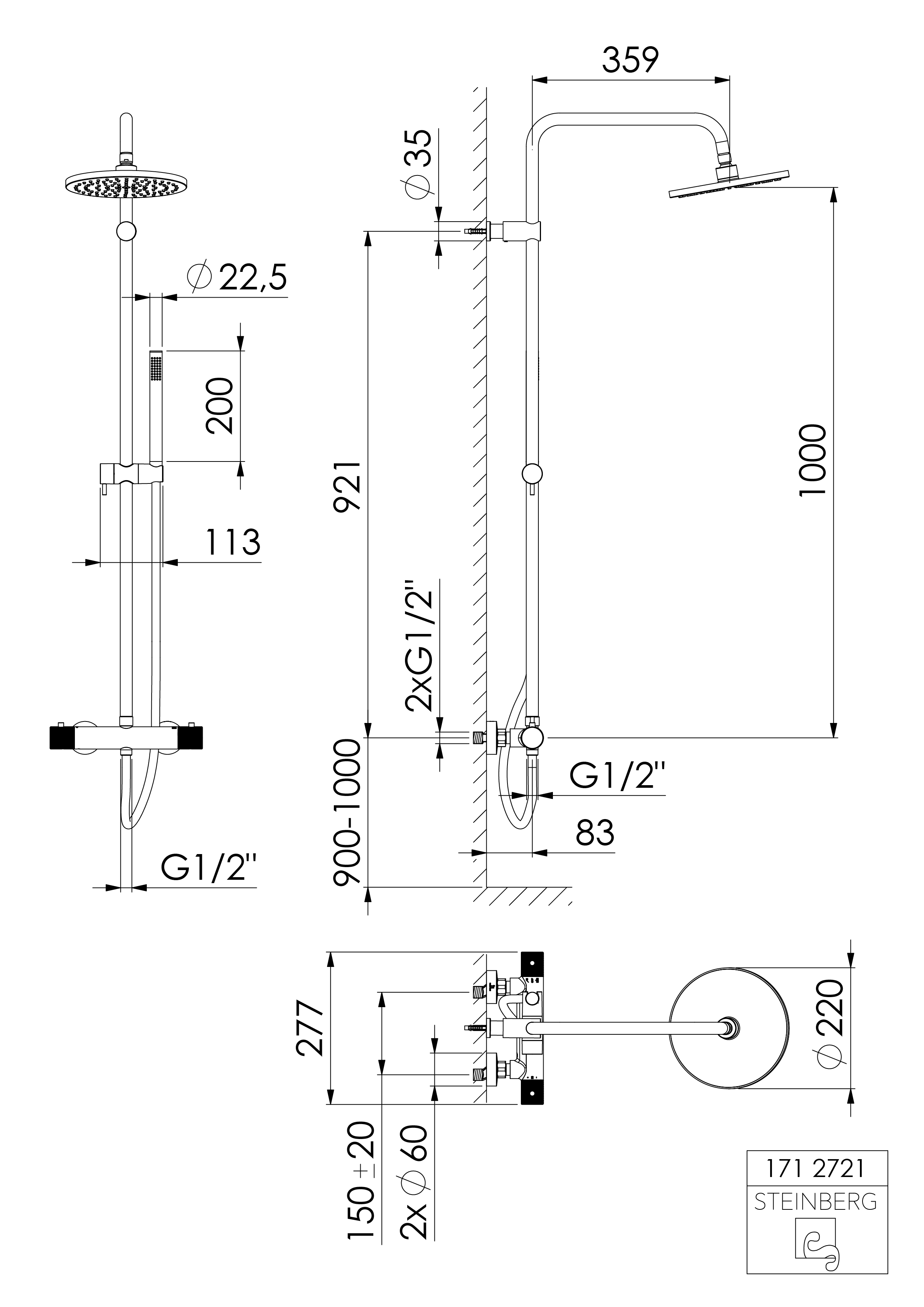 Короткий опис komplett mit Thermostatarmatur, mit Regenbrause (mit Easy Clean) und Handbrause, mit höhenverstellbarem Gleiter für Handbrause