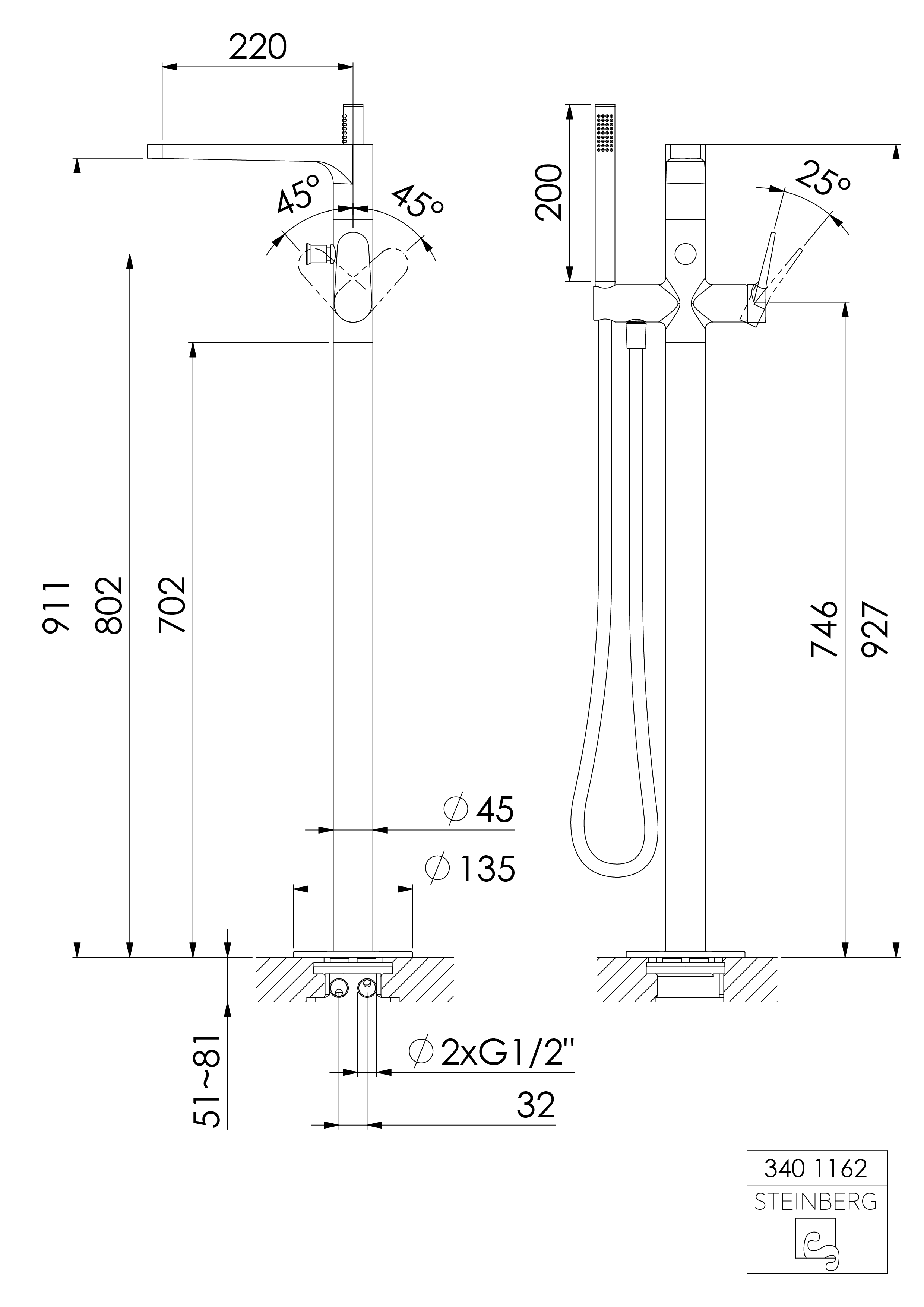Підлоговий змішувач для ванни (340 1162 BG)