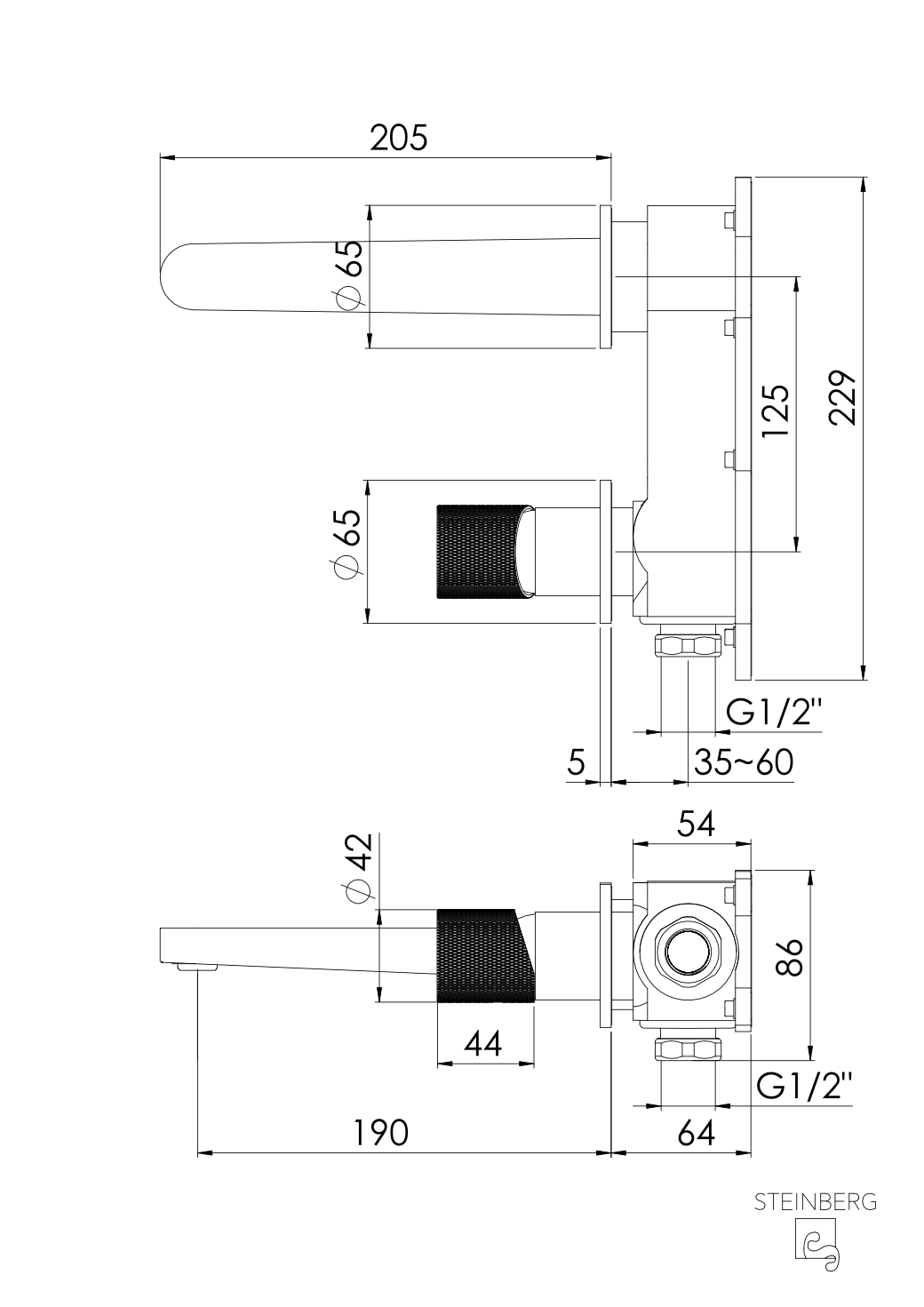Waschtisch-EHM-Batterie mit 190mm Ausladung (Unterputzkörper 010 1800 3 separat bestellen)